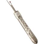 ボタンや縫い目の糸切りに便利です。 はさみでは切りにくいボタンの糸切り、縫い目、しつけ糸の糸切りに便利です。 長い方の先を糸の下に差し込み、押すようにして使います。 ●サイズ:全長120mm ※モニターによって実物のお色と若干異なる場合がございます。
